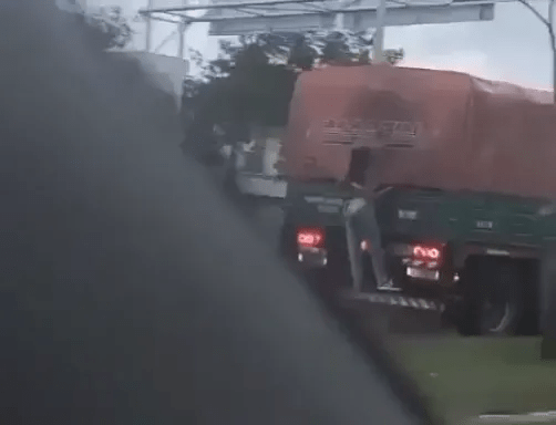 Una persona travesti fue vista sujeta a la parte trasera de un camión mientras circulaba por avenida Independencia, en la ciudad de Corrientes. La escena fue captada por otro automovilista.